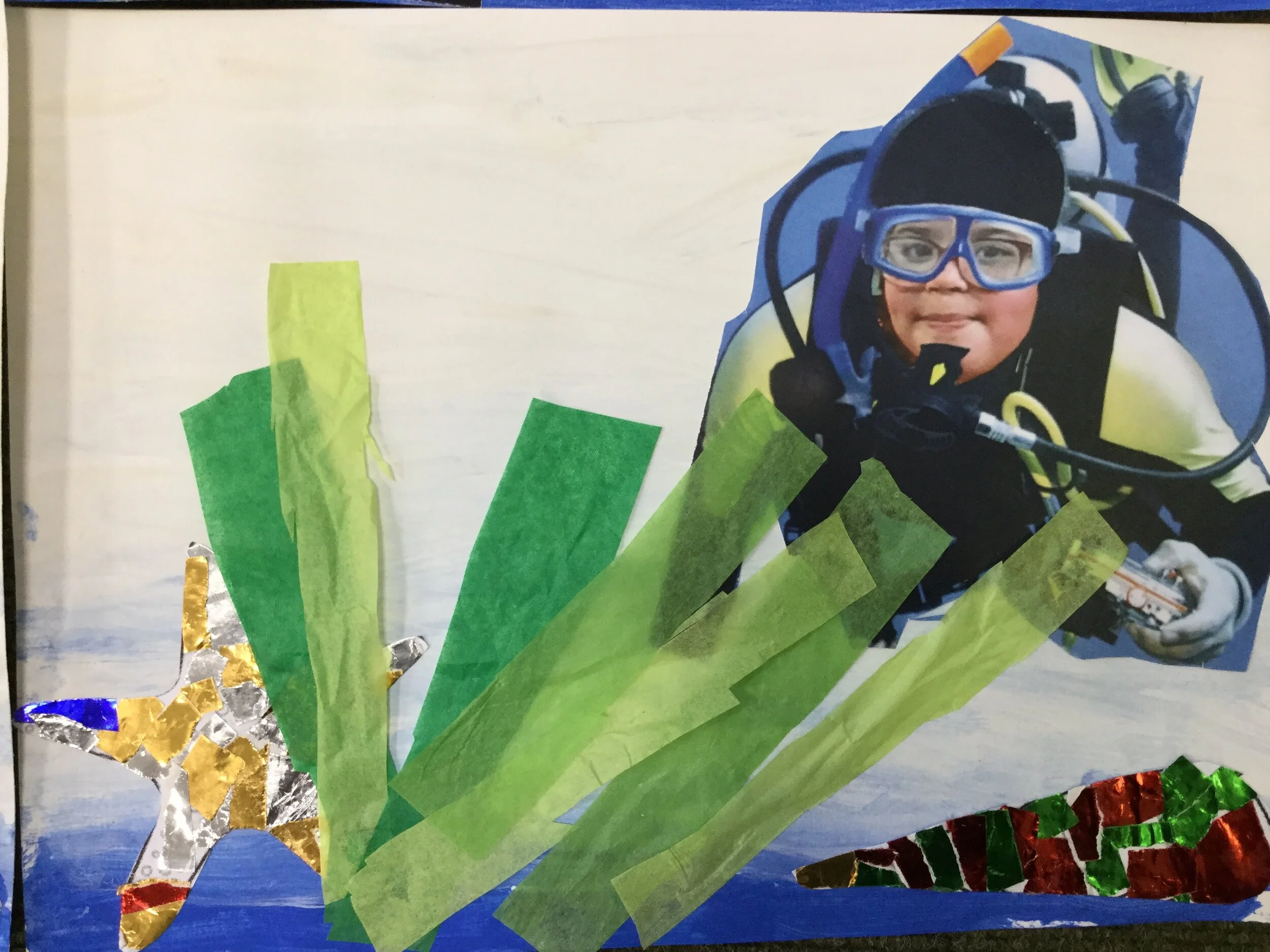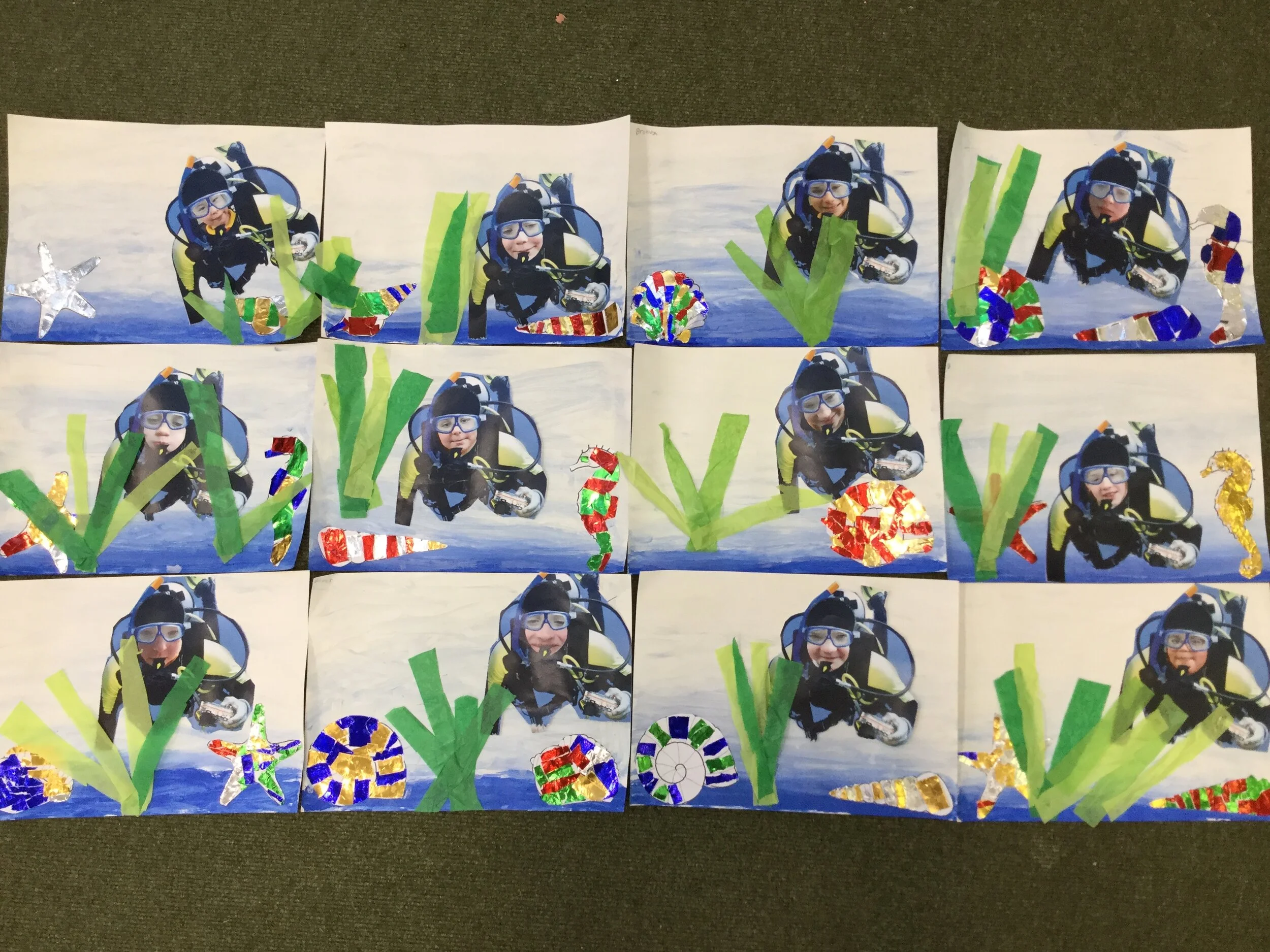We learnt how to use tint to create a realistic sea background and then used collage to add to the picture. We also used a tool on Purple Mash called Mashcam to turn ourselves into deep sea divers and added this to our art work.